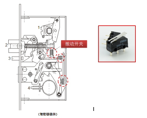 智能鎖是現(xiàn)在市場需求量非常大的一款智能產(chǎn)品,而且市場上的智能鎖種類繁多,價格不一,下面為大家介紹一下智能鎖中的一個起著靈魂作用的零件——智能鎖微動開關。微動開關在智能鎖里,做鎖舌的位置檢測,用以告知IC目前鎖的狀態(tài)——開鎖或關鎖。