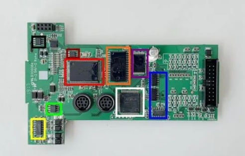 PLC 在 PCB 設(shè)計(jì)上分為了 3 個(gè)板子,從左至右分別為電源板、IO 口板以及主控板。