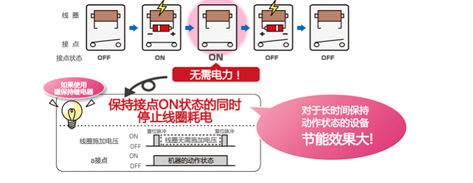 磁保持繼電器是近幾年發(fā)展起來的一種新型繼電器,也是一種自動(dòng)開關(guān)。和其他電磁繼電器一樣,對(duì)電路起著自動(dòng)接通和切斷作用。所不同的是,磁保持繼電器的常閉或常開狀態(tài)完全是依賴永久磁鋼的作用,其開關(guān)狀態(tài)的轉(zhuǎn)換是靠一定寬度的脈沖電信號(hào)觸發(fā)而完成的.線圈通電時(shí),接點(diǎn)處于on或者off狀態(tài),即使切斷線圈電壓仍能保持該狀態(tài)的功能。在設(shè)備的動(dòng)作狀態(tài)下,停止線圈耗電,實(shí)現(xiàn)節(jié)能。這一類的繼電器,叫做磁保持繼電器;