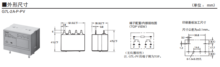 | 2極 | G7L-2A-P-PV | DC12、DC24 | 20個(gè)/托盤 |