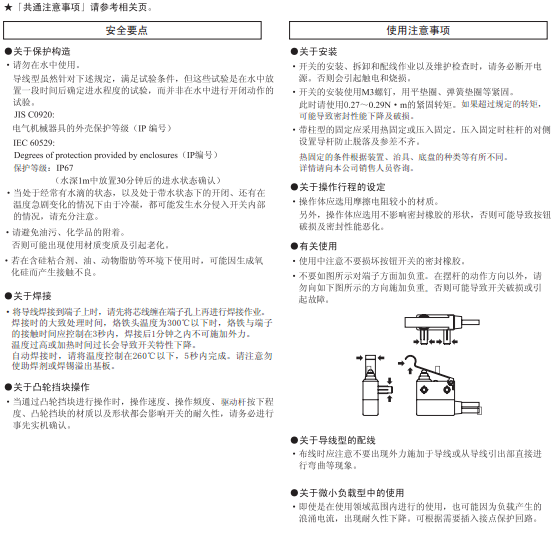 小尺寸、可進行可靠開關的長行程型開關 主體部分尺寸為前代產品的78%,有利于設備的小型化。 沒有擺桿也同樣使用方便的長行程規格 (OT參考值:1.4mm) 不含對環境有害的物質, 導線類型也實現了無鉛化。