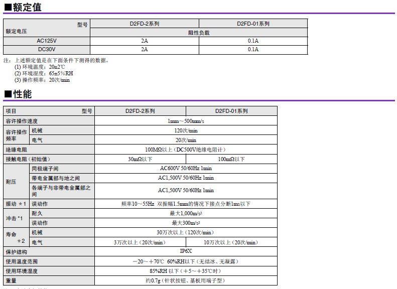D2FD-2歐姆龍微動開關