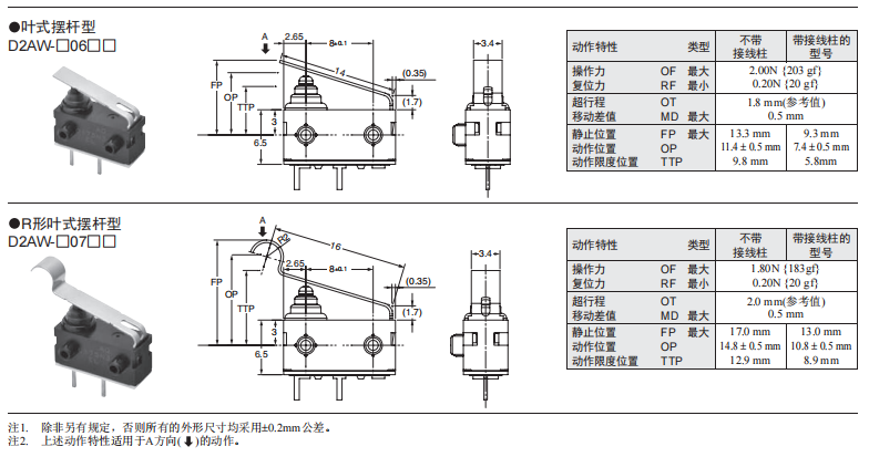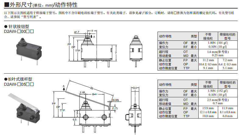 D2AW防水微動歐姆龍開關(guān)