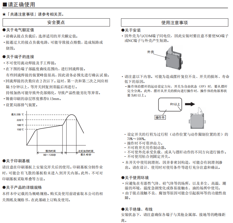 「社內(nèi)較小級(jí)」可實(shí)現(xiàn)高精度動(dòng)作的檢測(cè)開(kāi)關(guān) (寬3.0mm×長(zhǎng)3.5mm×厚0.9mm) 小型及薄型,為機(jī)器的小型化、薄型化作貢獻(xiàn)。 特定的接點(diǎn)機(jī)構(gòu),實(shí)現(xiàn)了高精度的動(dòng)作位置及高可靠性的接觸。 長(zhǎng)行程提高了使用的便捷性。 接觸規(guī)格(1a、1b)及多種擺桿,可適合范圍寬廣的各種用途。