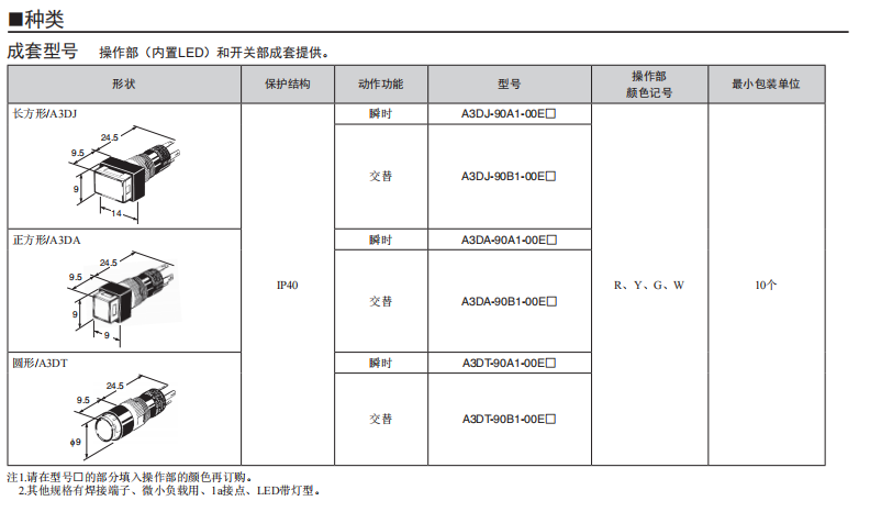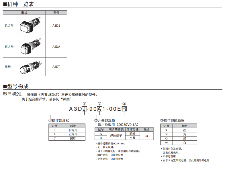 A3D 帶燈按鈕歐姆龍開關(guān)(圓型φ8)