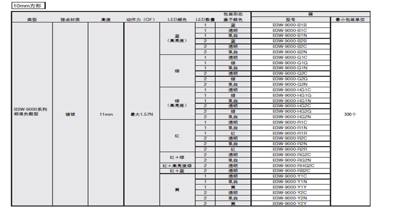 B3W-9000系列歐姆龍輕觸式開關