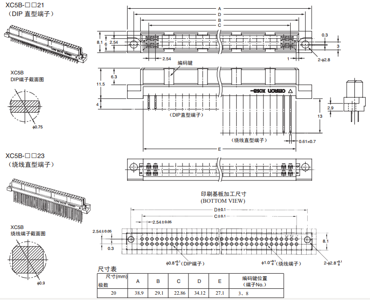 XC5B-3221 2列型插座/板對板連接器