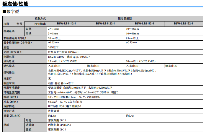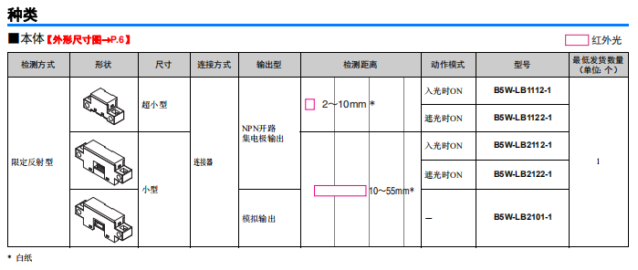 鏡面反射光電開關可檢測透明物體B5W-LB2101