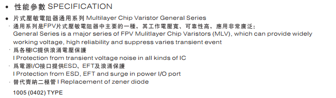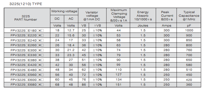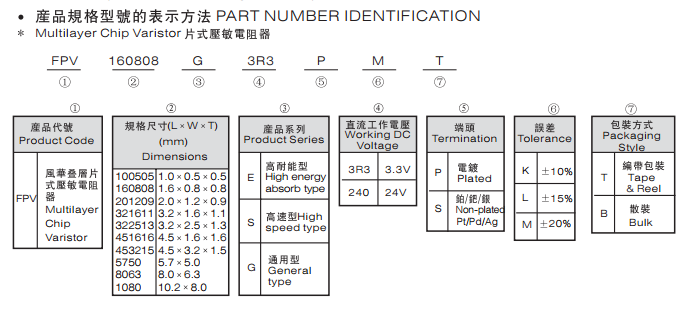 多層片式壓敏電阻器 FPV322513E3R3PMT